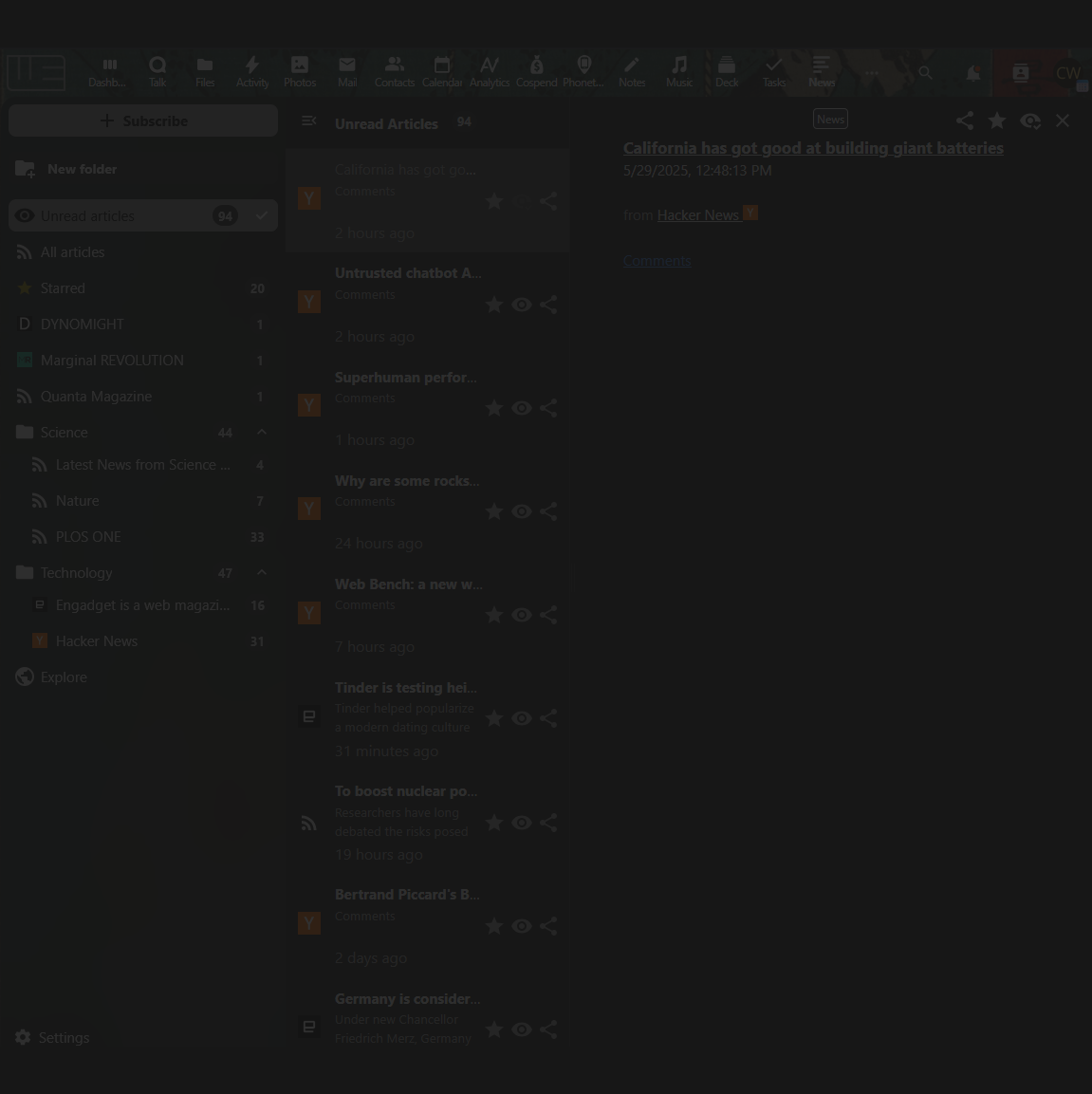 Calendar, Contacts, Mail, Notes, Deck (Kanban), Talk (video chat)